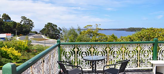 From the history room you climb the staircase to the widow's walk, where there is a seating area available for you to enjoy a spectacular view of Macquarie harbour.