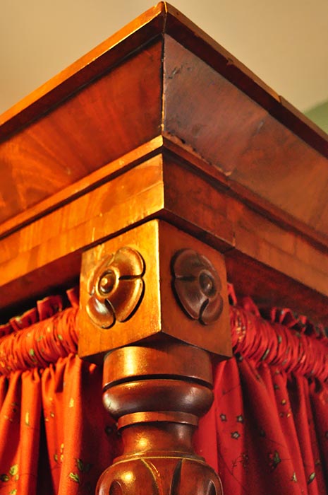 A beautiful Victorian room with antique four poster bed and delightful period decor, wallpaper and fabrics. The federation bathroom features a walk-in shower. The window looks out onto landscaped gardens and welcomes the morning sun.